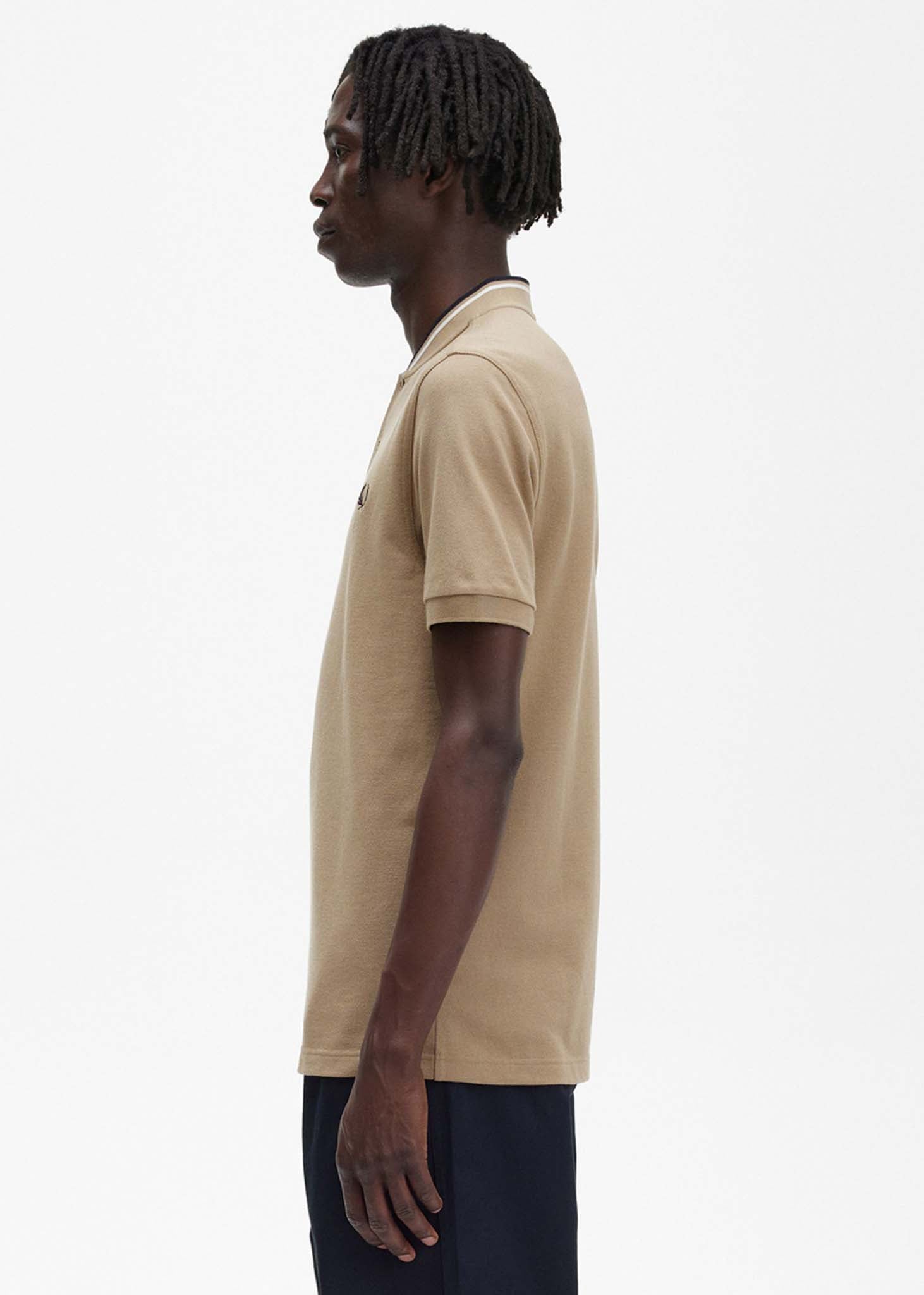 Bomber collar polo shirt - warm stone