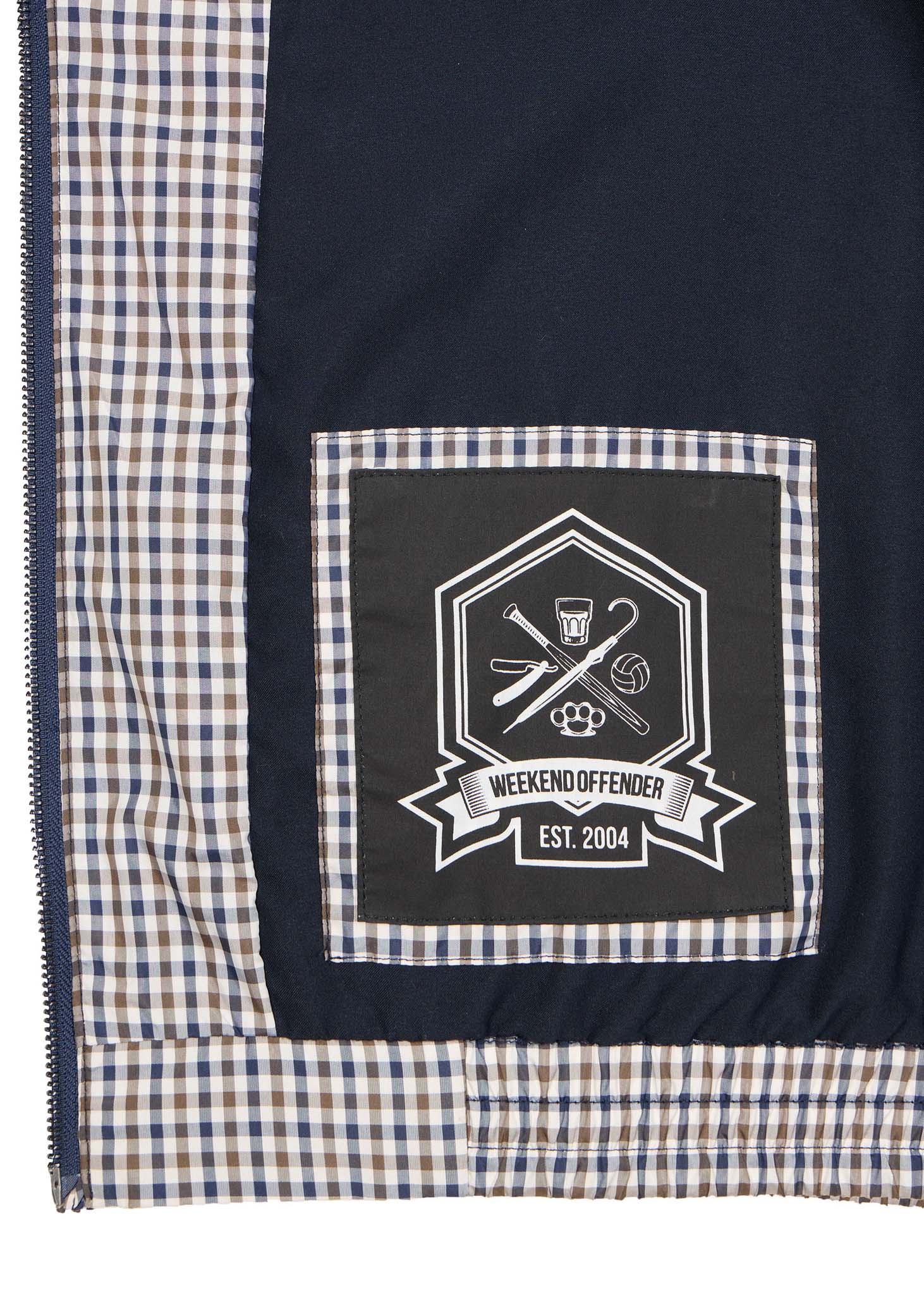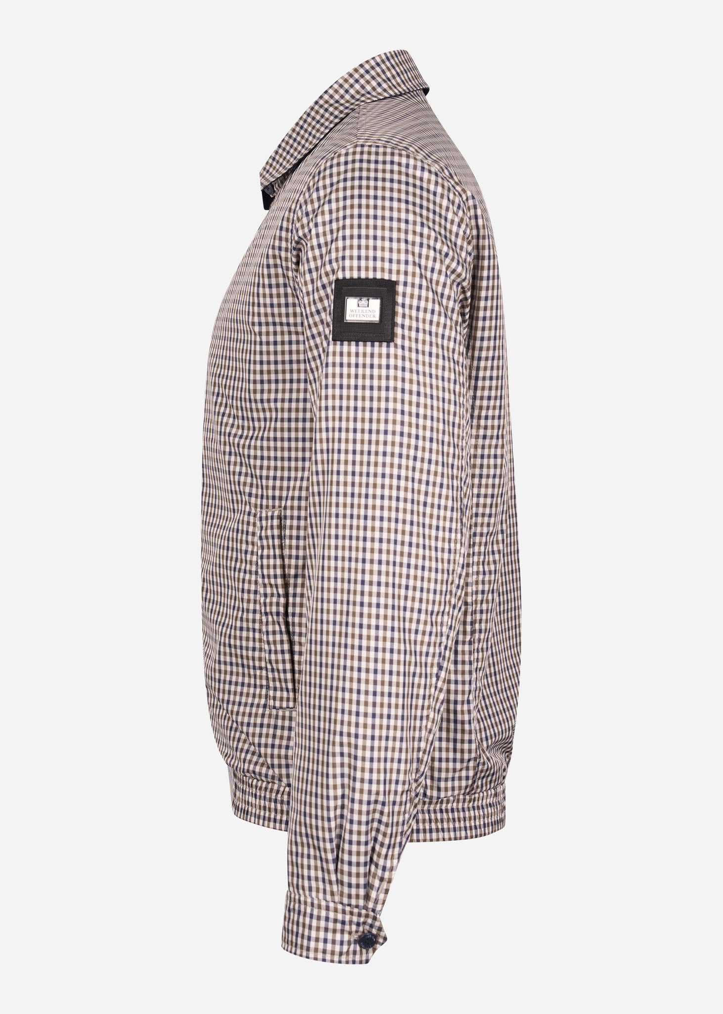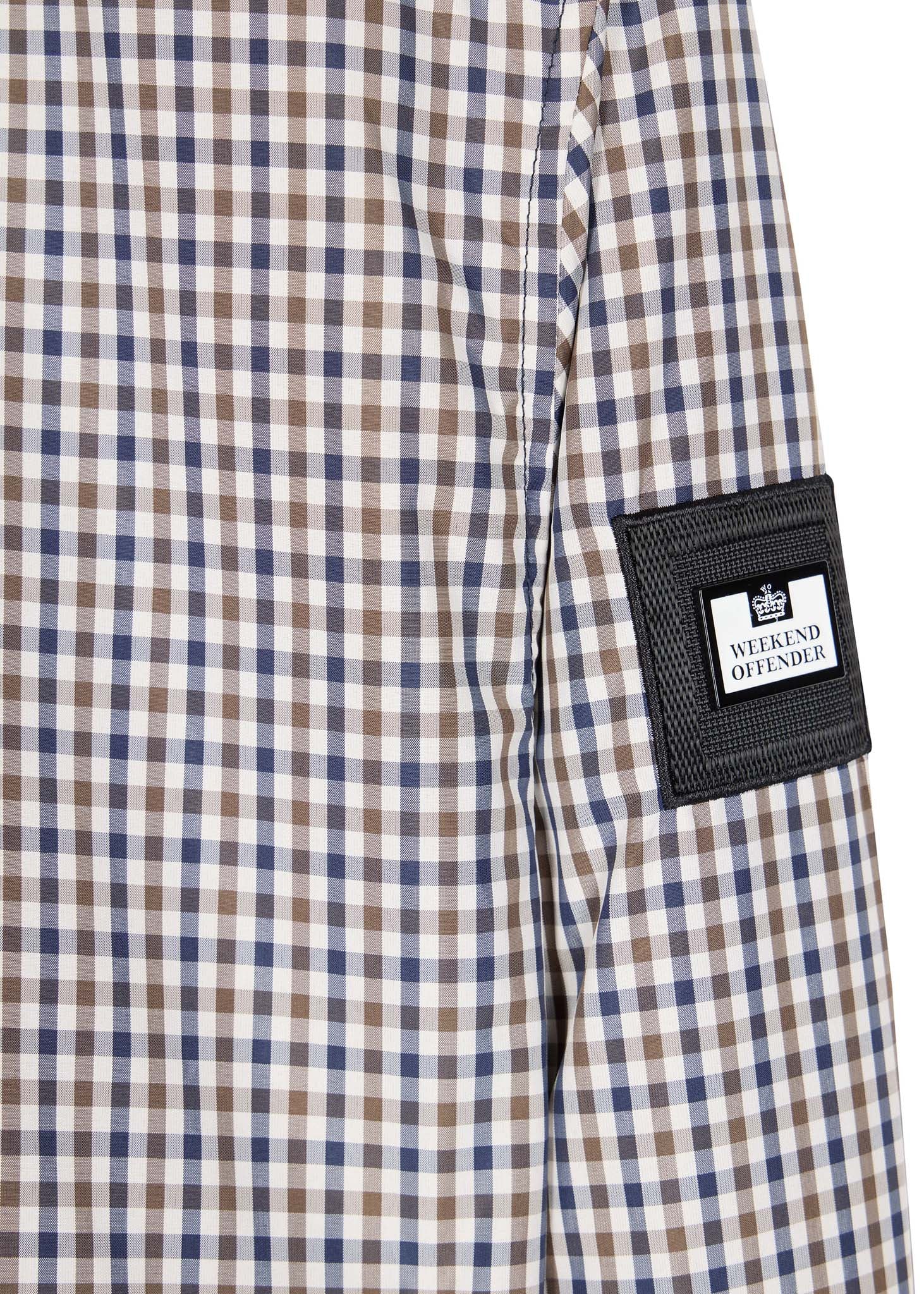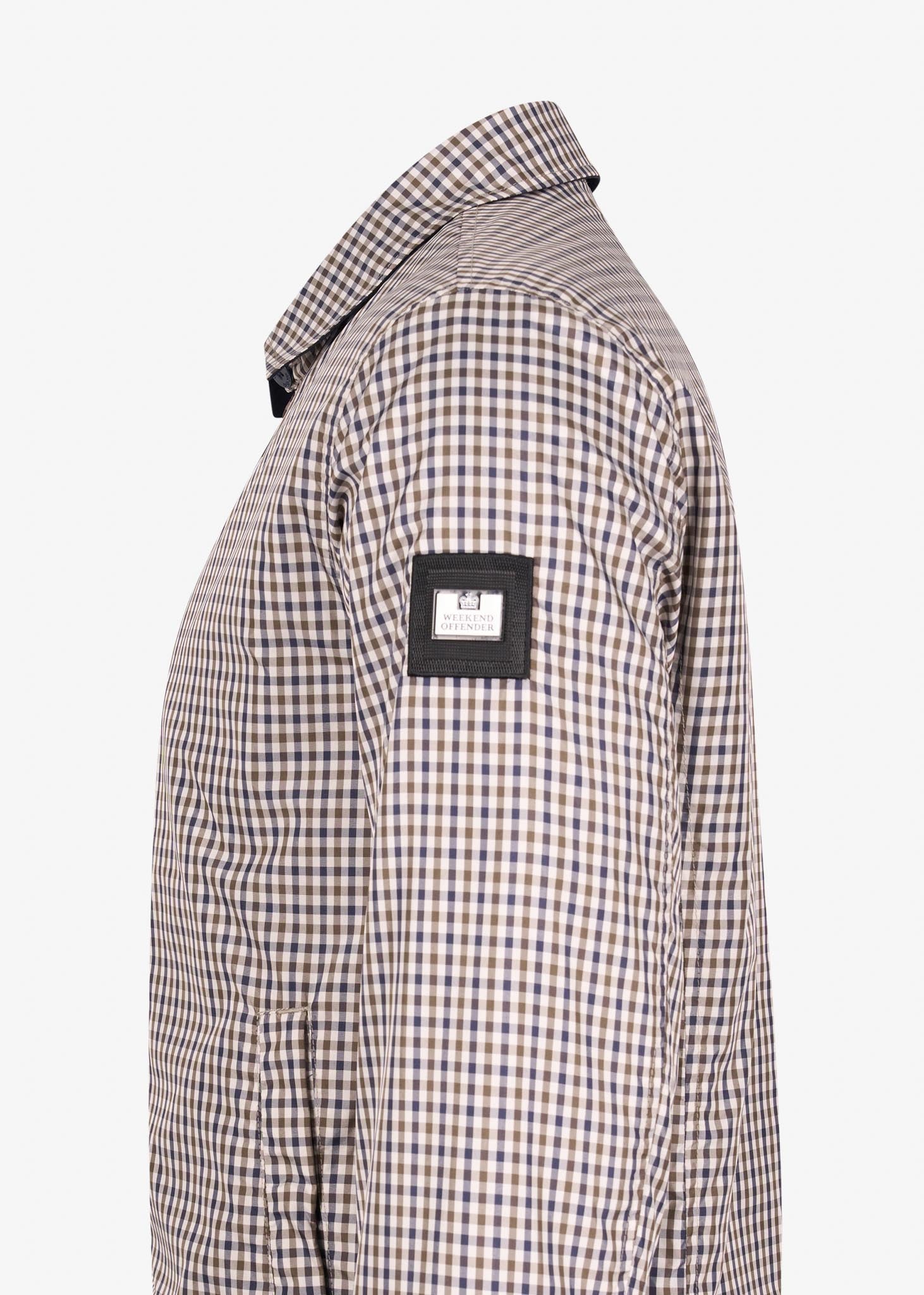 De Campbell jas van Weekend Offender valt op dankzij het fraaie ruitenpatroon wat over het volledige kledingstuk weergegeven is. Deze jas is voorzien van een kraag met knoopsluiting. Ook heeft deze jas een elastische zoom en zijn de manchetten te verstellen met knopen. Dit zorgt ervoor dat deze jas altijd goed aansluit op jouw lichaam. Verder heeft deze jas steekzakken met drukknoopsluiting zodat je jouw spullen ook mee kunt nemen. Deze mooie jas is afgewerkt met het logo van Weekend Offender op de linkermouw.