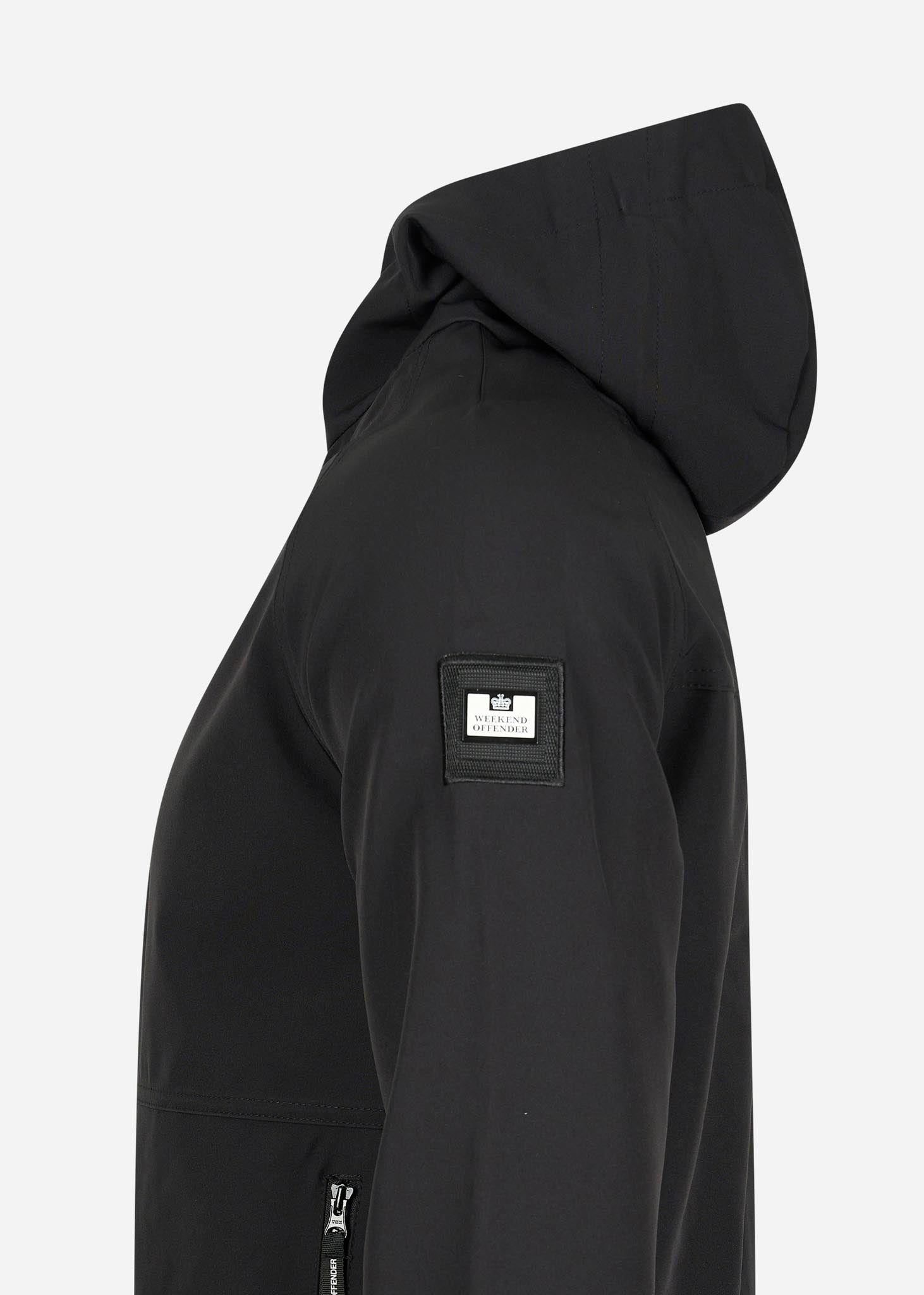 De Stipe softshell jas van Weekend Offender is van alle gemakken voorzien. Aan beide kanten vind je zakken met ritssluiting. Deze zijn ideaal om al jouw belangrijke spullen bij je te dragen. De capuchon is verstelbaar, zodat deze altijd goed zit. In deze capuchon is tevens een gezichtsmasker verwerkt. Verder zijn de manchetten geribbeld voor extra draagcomfort. De jas is afgewerkt met een tekstdetail aan de binnenzijde en het logo van Weekend Offender op de linkermouw.