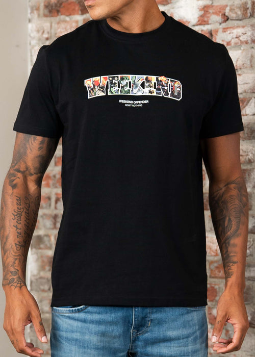 De Saturday Graphic Tee draait om de liefde voor het weekend. Het woord “Weekend” is gevuld met iconische elementen die de typische zaterdag van voetbalfans over de hele wereld laten zien.