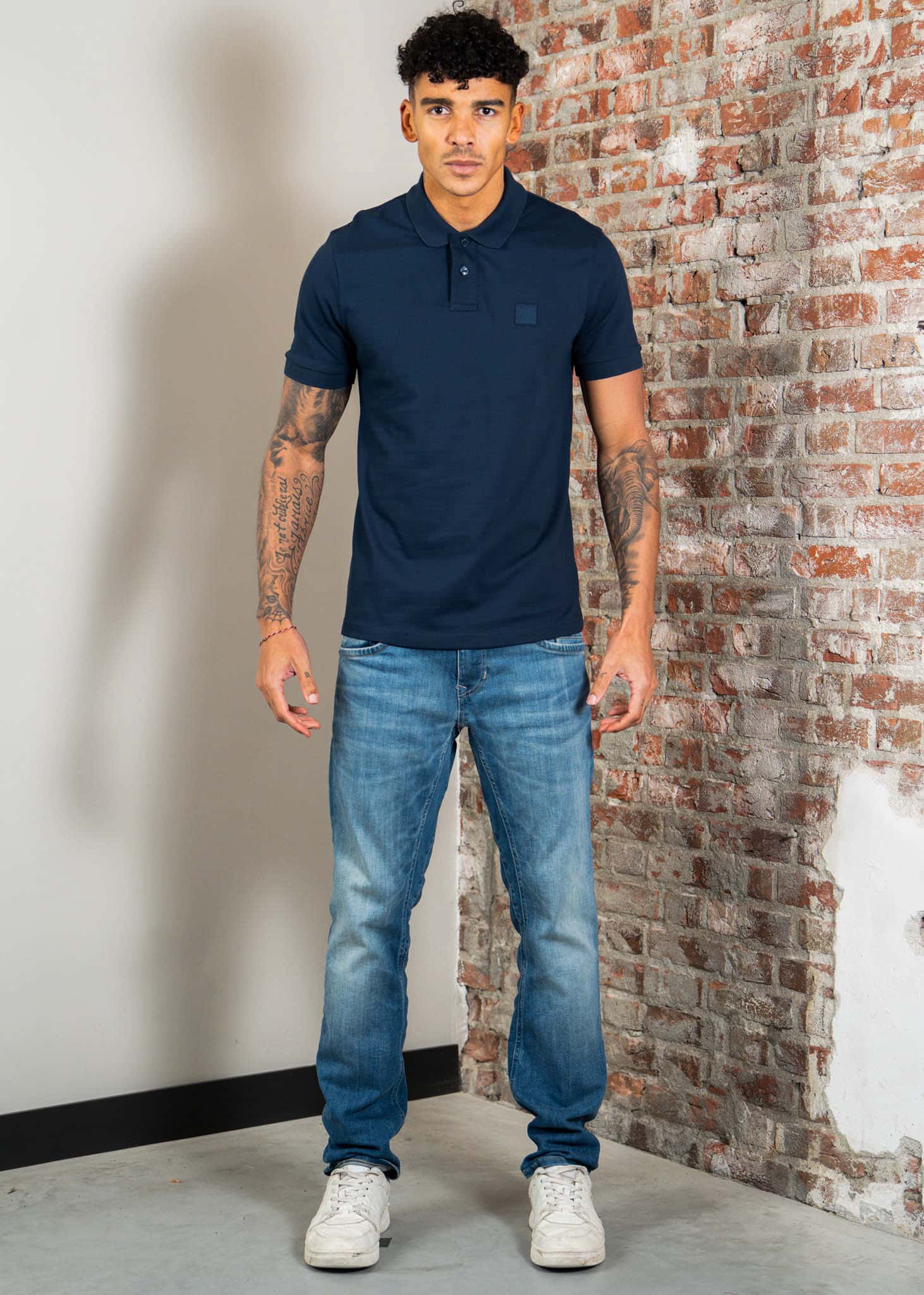 Das Passenger Polo von Hugo Boss ist ein Slim-Fit Poloshirt aus Stretch-Baumwolle mit Logo-Patch. Das Shirt hat einen sportlichen Look mit kurzer Knopfleiste und Flachstrickkragen sowie Bündchen.
