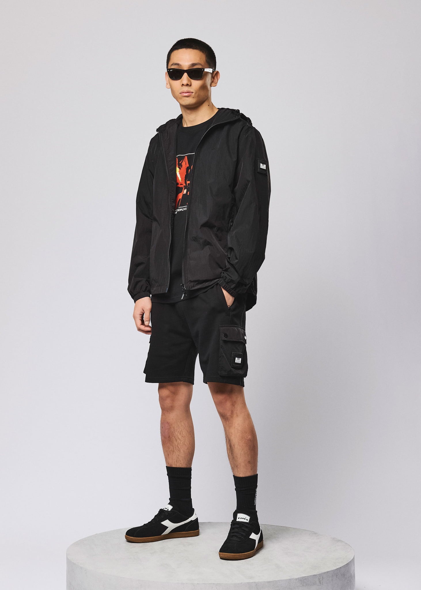Leichte technische Jacke aus Fallschirm-Nylon mit wasserabweisender Beschichtung. Funktionales Design mit Mesh-Futter und verstellbaren Details.