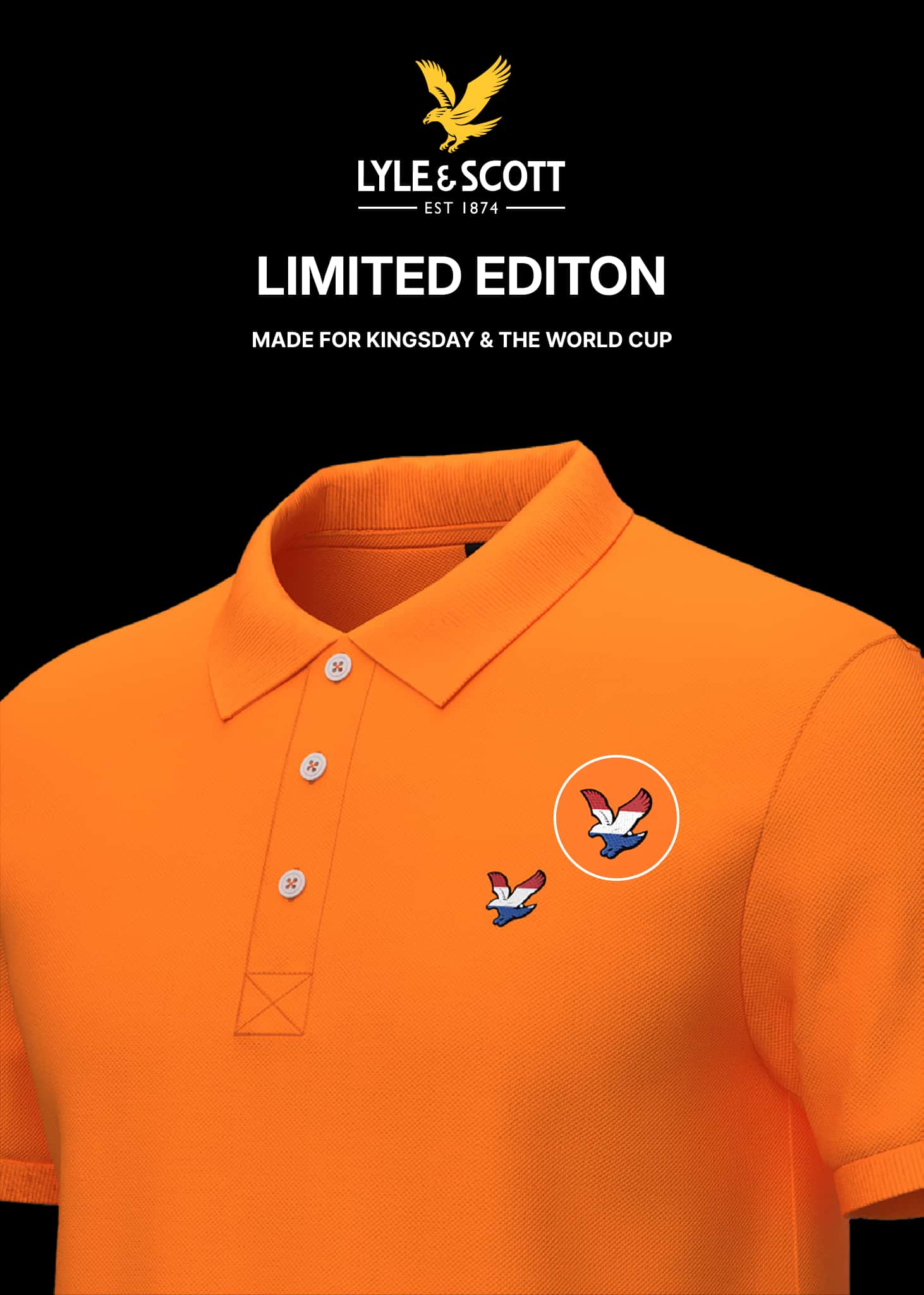 De Lyle & Scott polo is een tijdloze klassieker met een unieke twist. Limited edition met rood wit blauw eagle logo, speciaal voor Koningsdag en het WK.