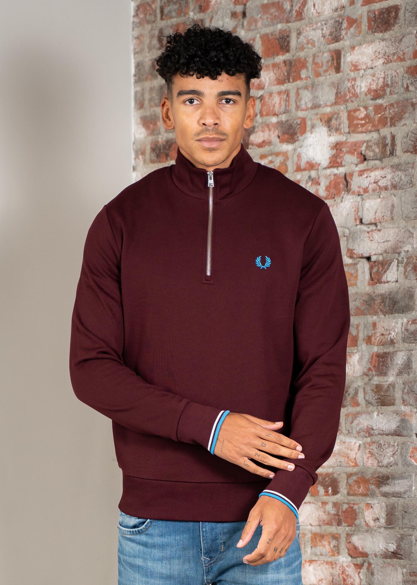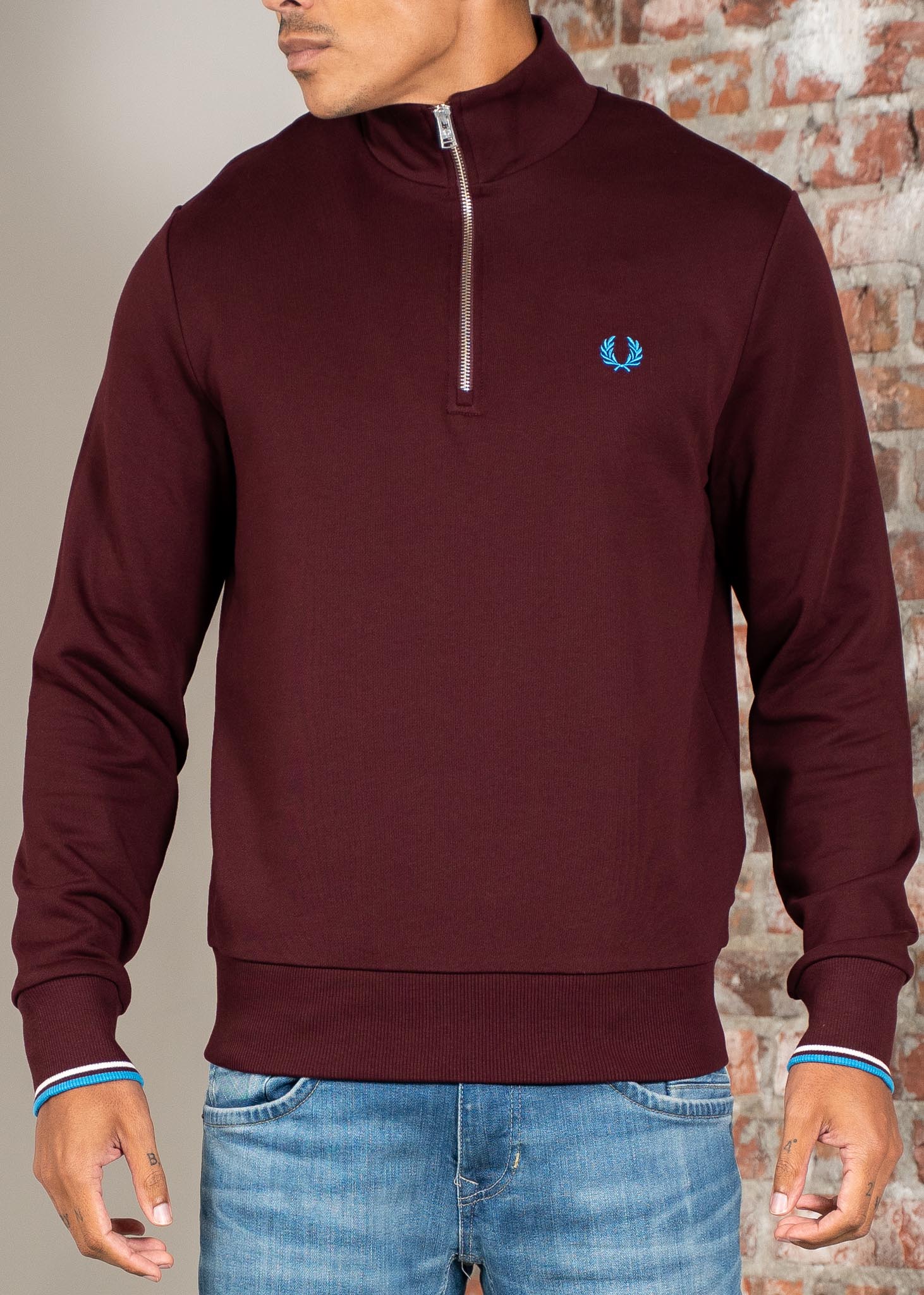 Half zip sweatshirt - oxblood ecru court blue