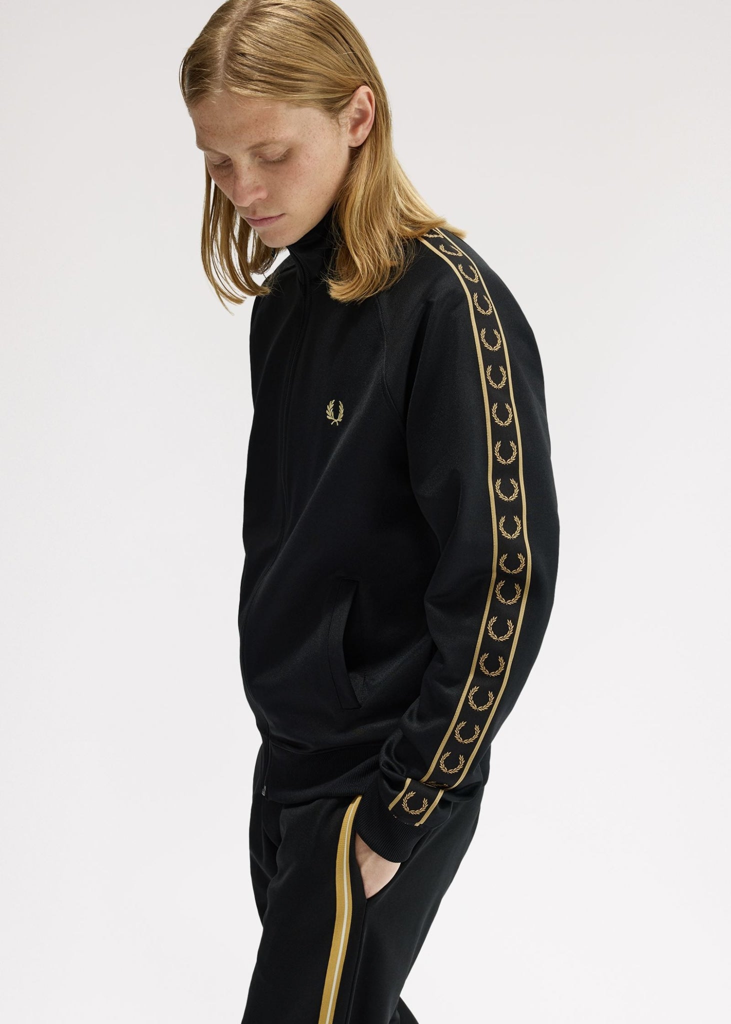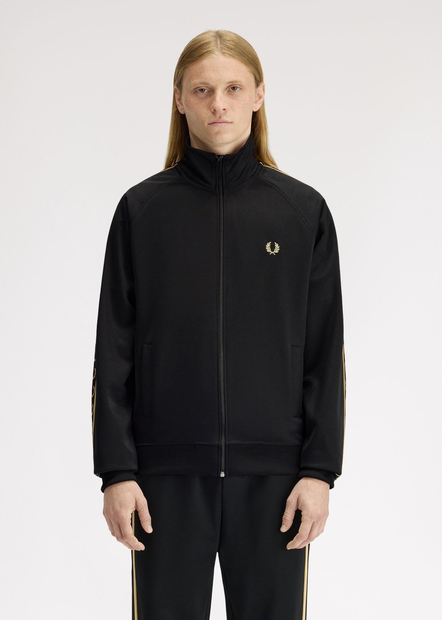 Contrast tape track jacket - black champagne