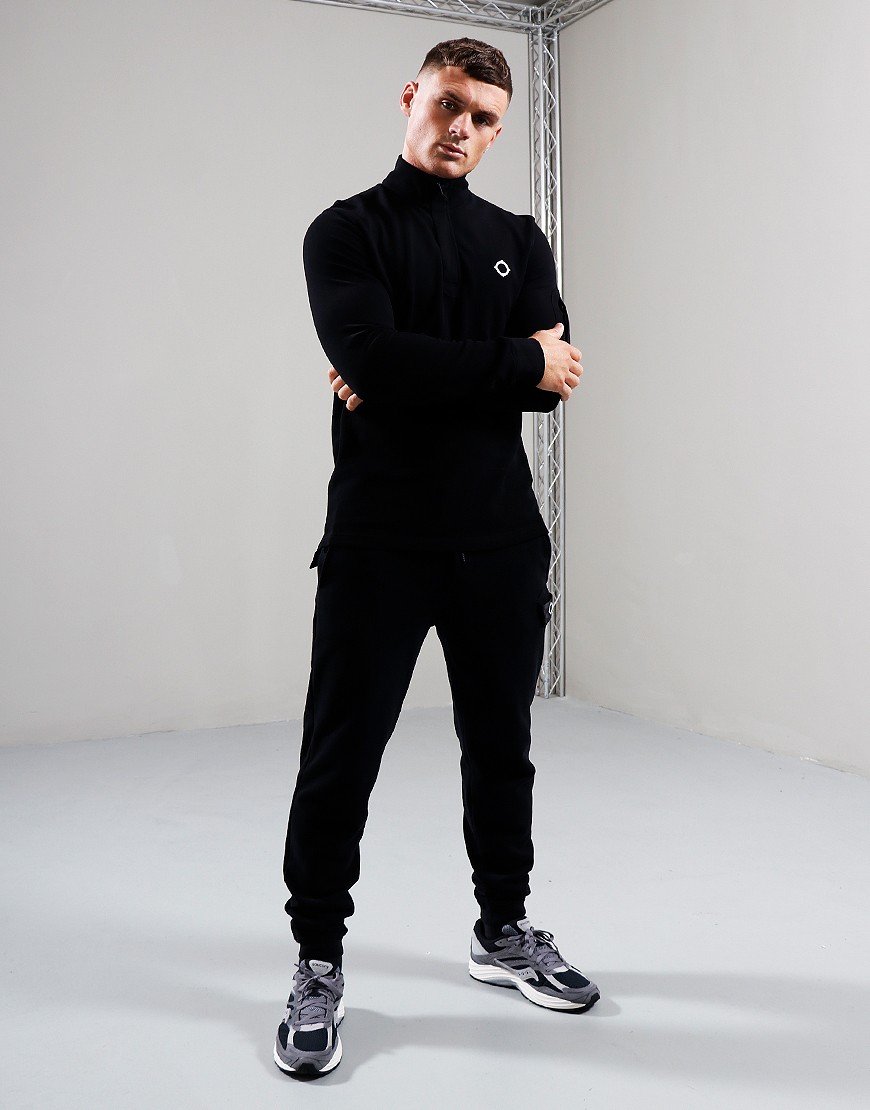 Ls funnel neck polo - black