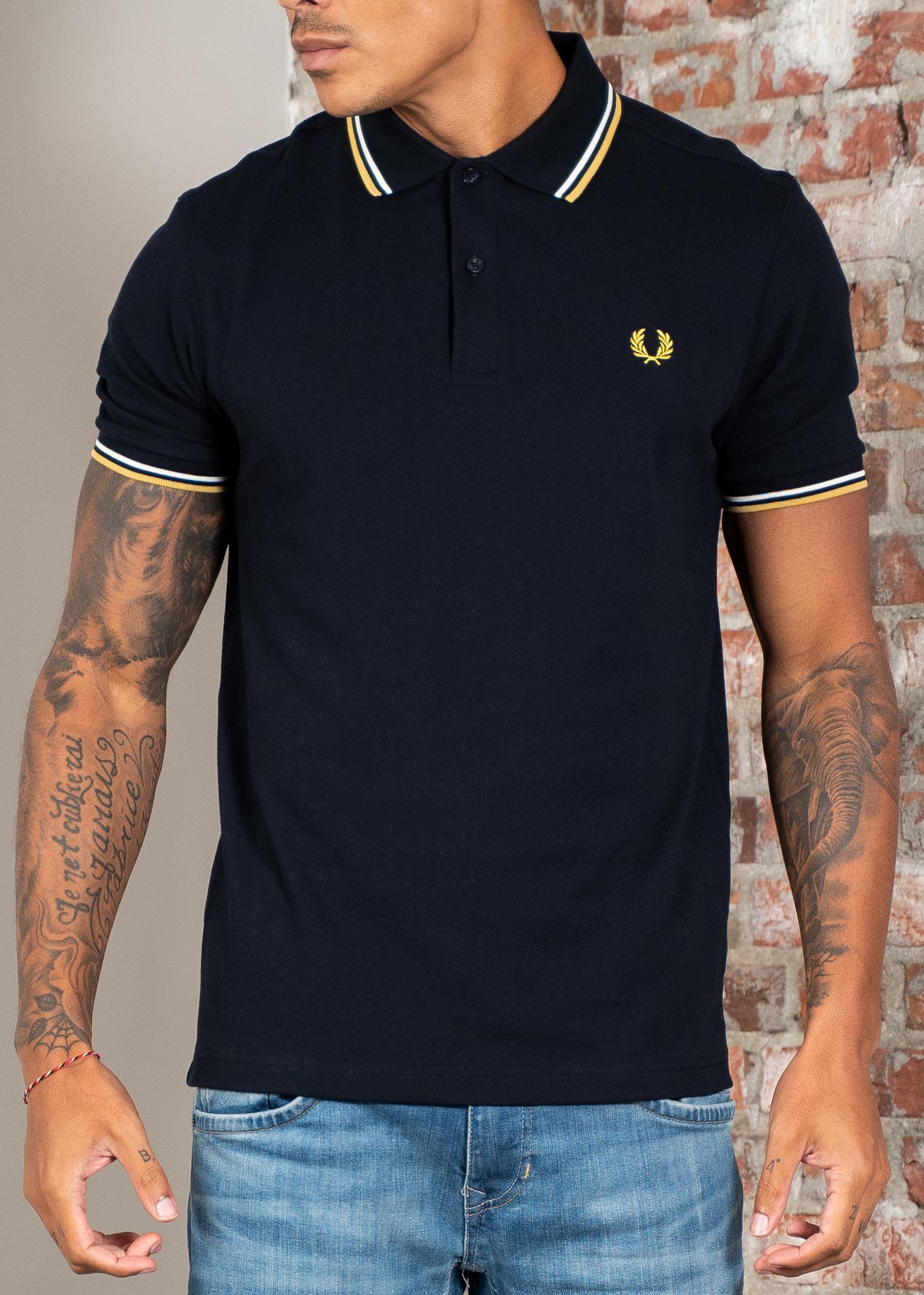 Fred Perry Polo's Twin tipped fred perry shirt - navy ecru honeycomb