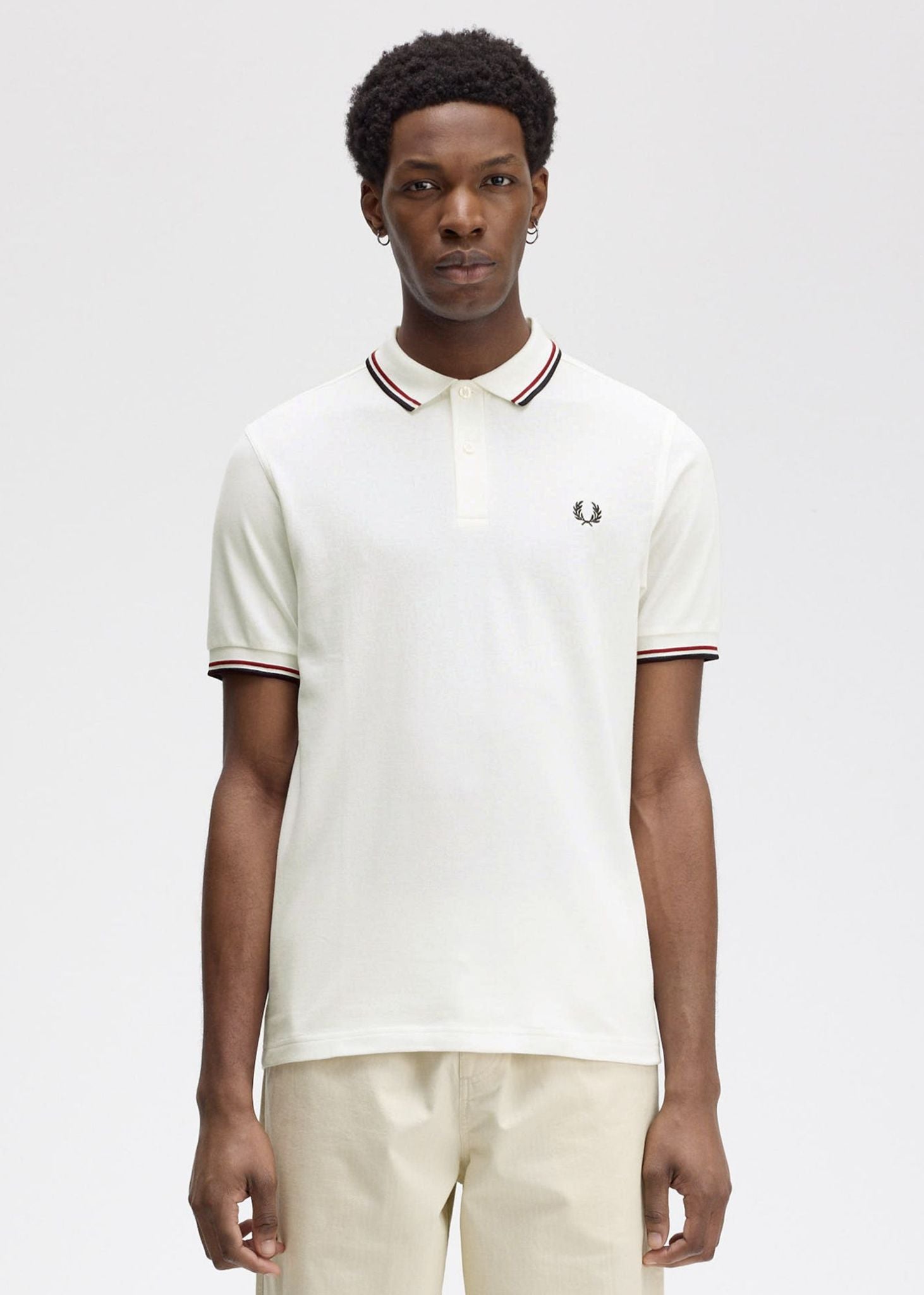 Twin tipped fred perry shirt - snow white burnt red navy