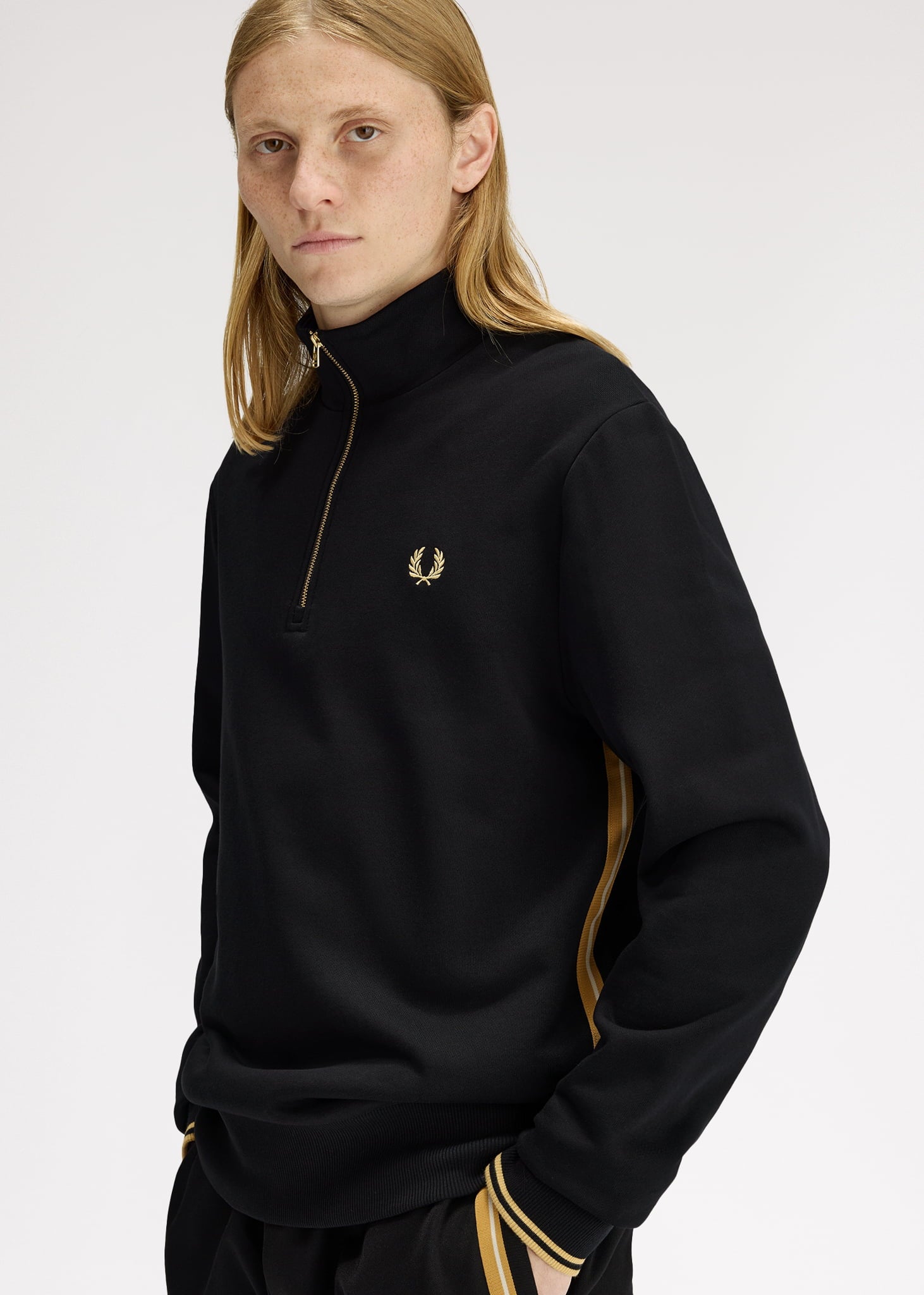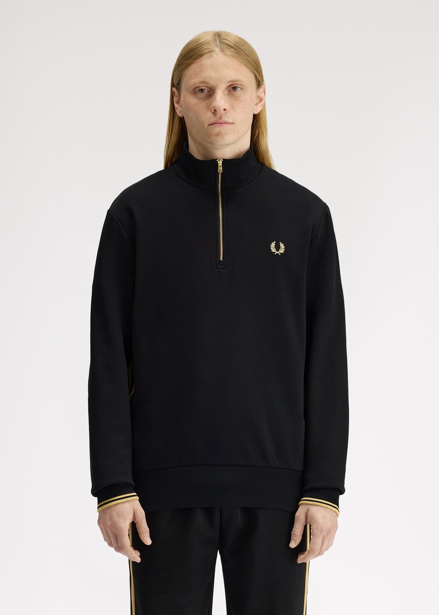 Stripe tape half zip sweathshirt - black champagne
