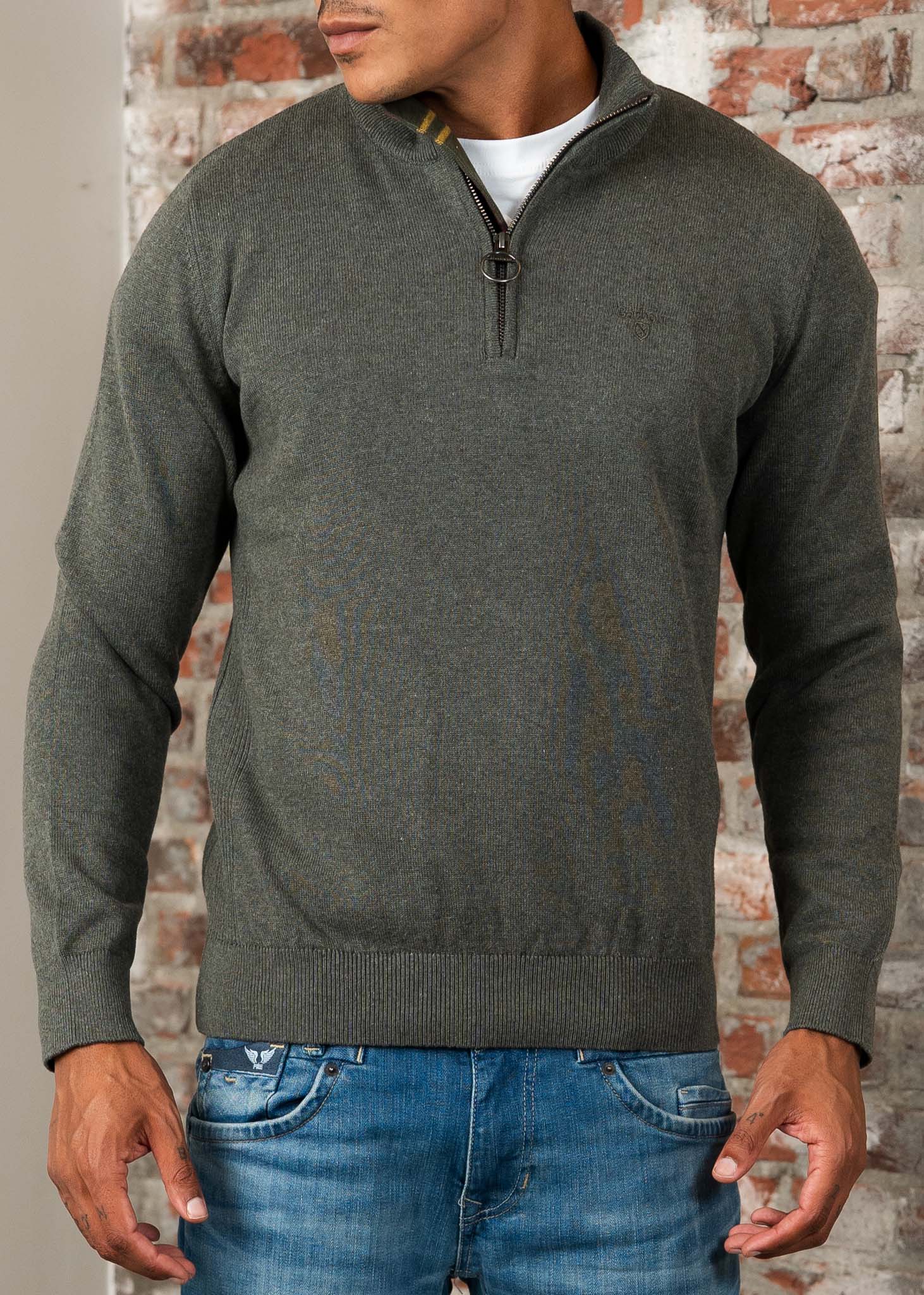 Cotton half zip knitted jumper - olive marl