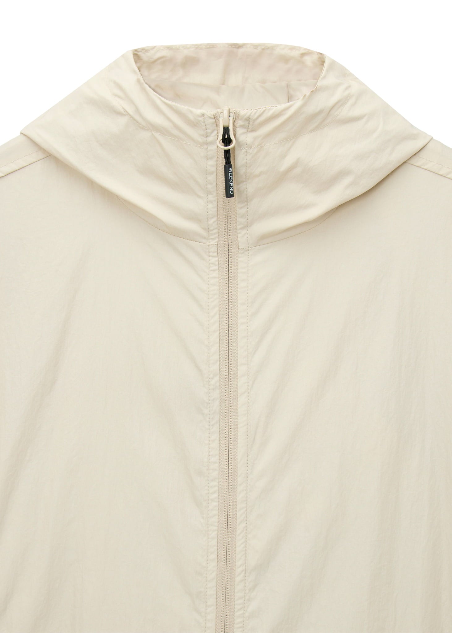 Lichte technical jas van parachute nylon met waterafstotende coating. Functioneel ontwerp met mesh voering en verstelbare details.